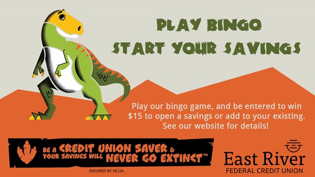 We invite you on a Jurassic journey to financial wellness! In the month of April, play our "Be a Saver" Bingo and have a chance to win $15 for your child's savings account and other prizes. Also be sure to watch our social media for more tips on how to teach children of all ages how to gain healthy financial habits!