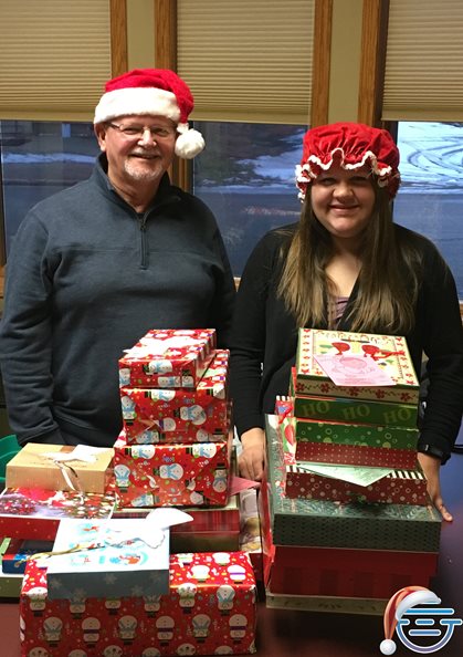 Photo: Dennis Zingmark and Amanda Palli purchased and wrapped gifts for the Angel Tree in Madison, SD.