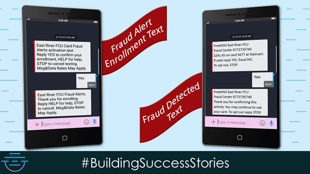 Previously, when fraud was detected on a debit card, cardholders would receive an automated voice call. Beginning August 1st, members will have the option to enroll in fraud alerts via text message that will be sent immediately when the fraud is detected. If a cardholder does not respond to the message, they will receive an automated voice call. Examples of the enrollment message and the various text messages are shown below.