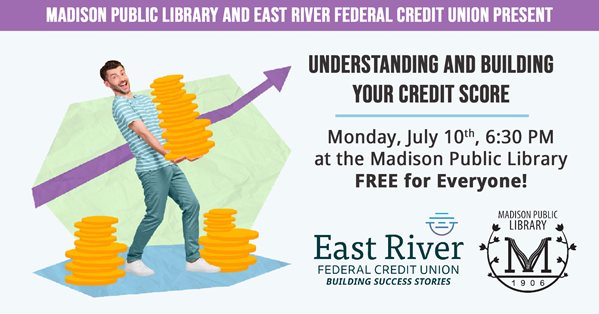 East River FCU and the Madison Public Library present "Understanding and Building Your Credit Score" on Monday, July 10th at 6:30 pm at the Madison Public Library. This event is FREE and for anyone, any age! Spanish interpreter on-site. Light refreshments served!